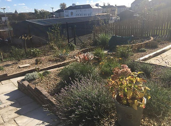 The Garden was an accidental design project. Sitting in the Improvements Art group we got the news that the funding wasn't going to be passed for the garden. This meant that the work we'd been doing for nearly 8 months would be for nothing because the work was specific peices of art that would become paving stones within the garden path. Not content with the funding refusal I took another look at the garden as it was. I looked out over an open green surrounded by high fences. This was not a place to inspire relaxation and healing. Funding had already been vetoed though, right? Not exactly, the previous designer and building team had quoted big money (£££s) and so when looking at that, of course they refused. But we didn't need to spend all that, in fact we could do a lot more with a lot less. So that's just what we did. I wanted the space to be welcoming and yet sheltered, making use of the natural slope of the ground allowed us to make use of the earth that was excavated to level the ground as well as creating the sunken area for seating.